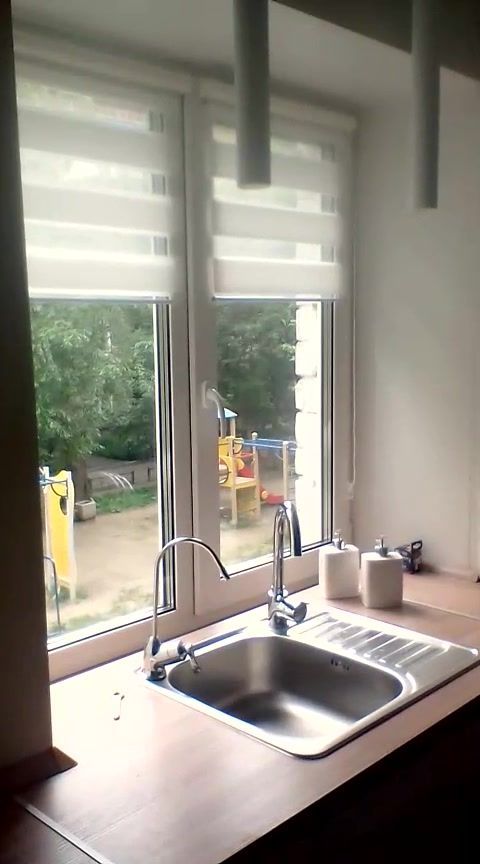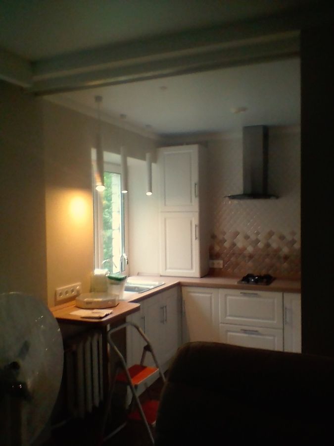 Кухня, объедененная с гостиной. Раковина у окна.